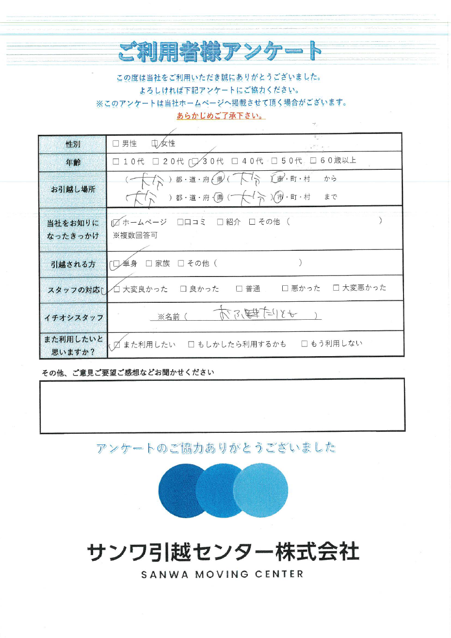 サンワ引越センターに寄せられたお客様アンケートをご紹介しています。